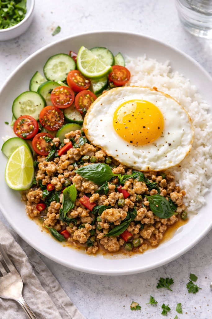 - Finish with Basil: Turn off heat and fold in Thai basil. Stir until wilted.